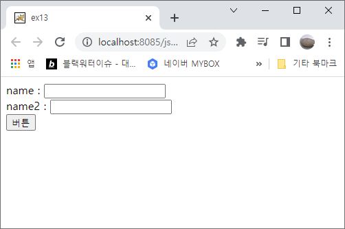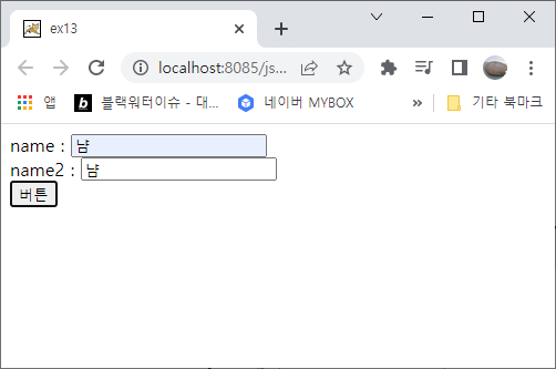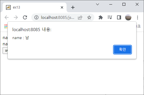 ③ alert에서 확인을 누르면 name2의 value를 name의 value로 바꿔주는 것을 확인할 수 있습니다.