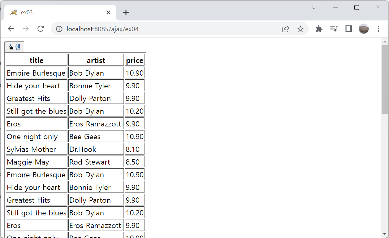 printData += "<td>"+resData.cd[i].artist+"</td>"