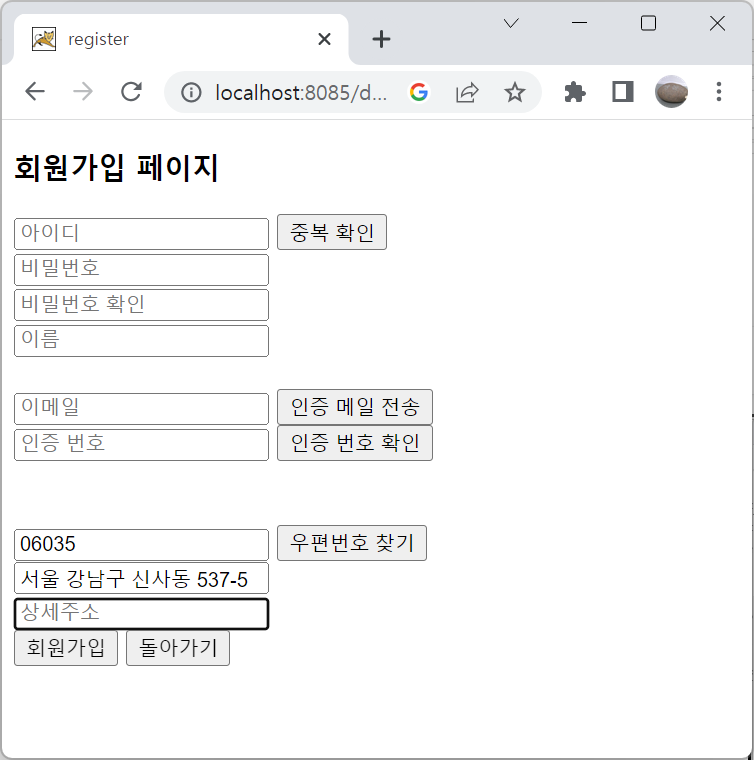 <input type="text" id="sample6_detailAddress" placeholder="상세주소">