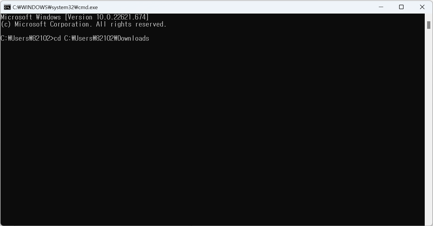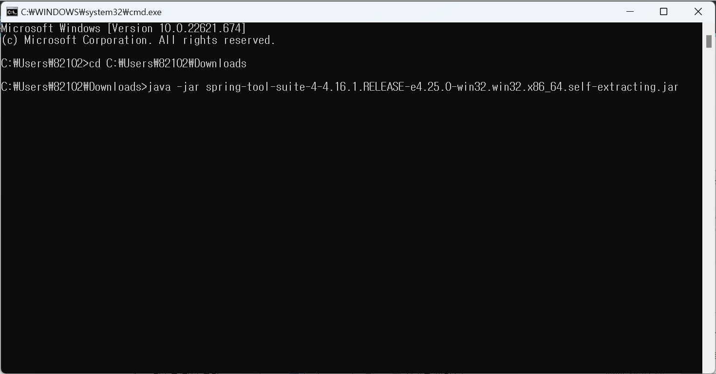 cmd창에서 cd 명령어를 통해 해당 경로로 이동합니다.