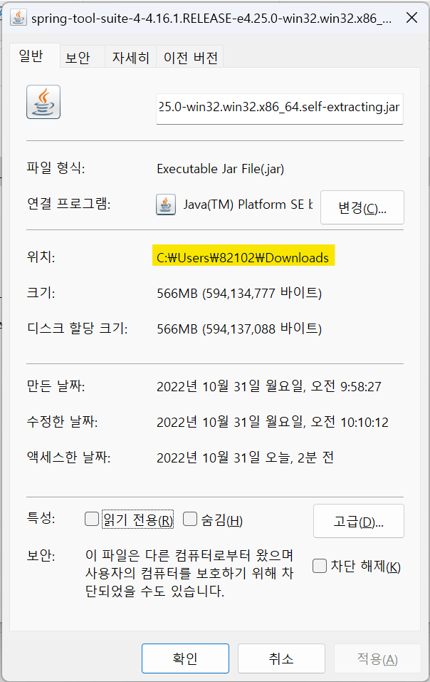 다운로드한 파일의 확장자는 .jar 인 것을 확인할 수 있는데,