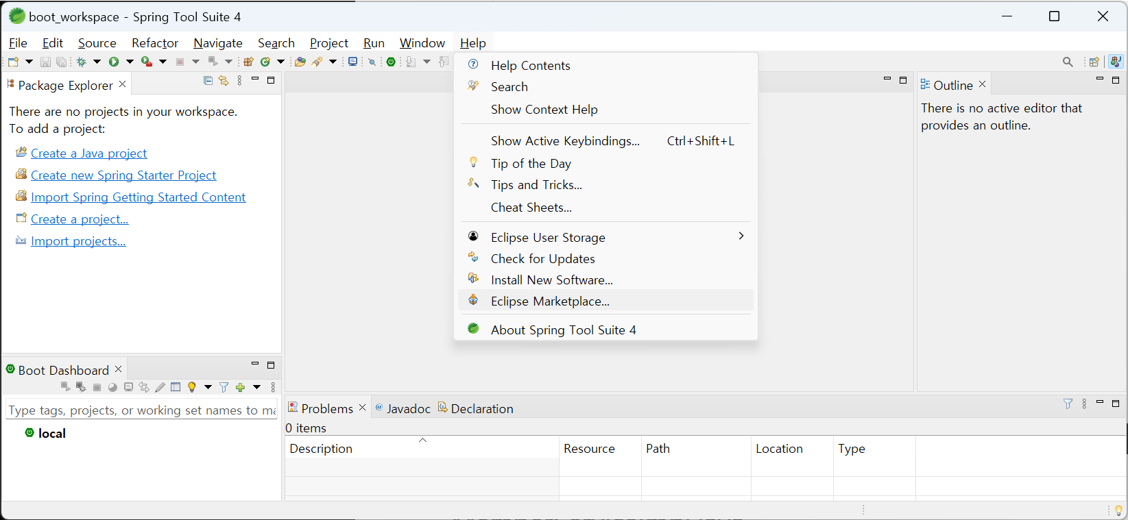 정상적으로 압축이 해제된 폴더에서 SpringToolSuite4.exe를 실행한 후,