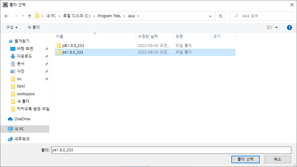여기서 jre 버전은 다를 수 있으니 폴더 이름이 다를 수 있다.