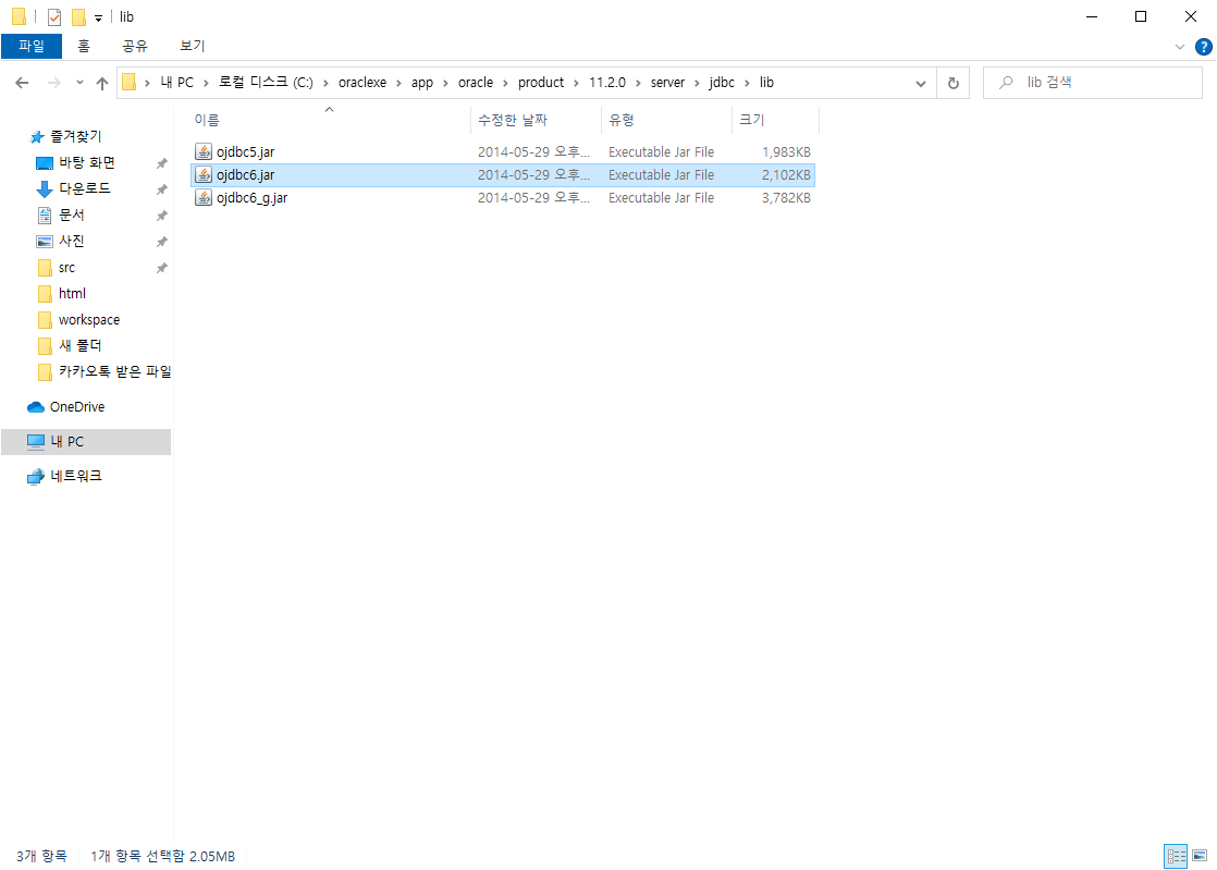 위치를 찾아가보면 'ojdbc6.jar' 파일이 있다.