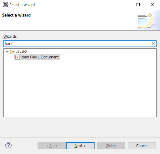 위의 방법까지 잘 따라왔다면 검색창이 나온다. 여기서 fxml을 입력하면 하나밖에 안나온다 선택하자.