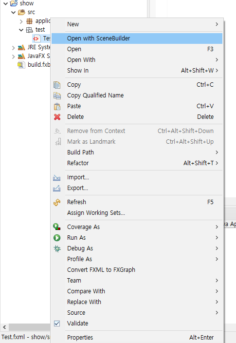 fxml파일 우클릭 - Open with SceneBuilder 선택